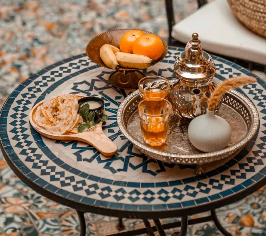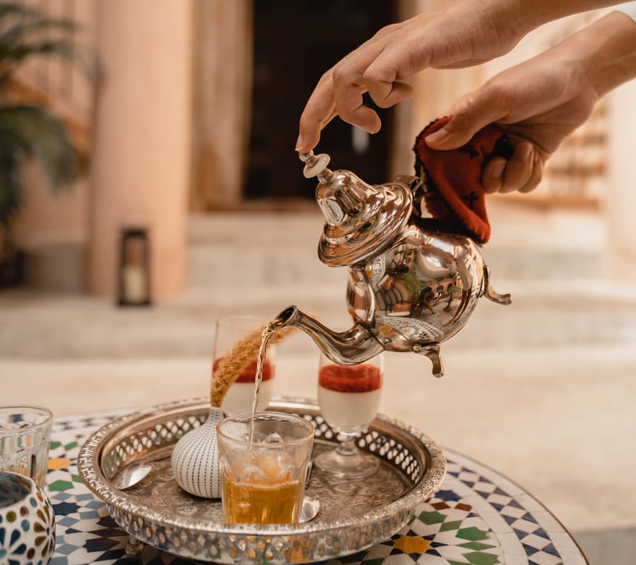 ตามธรรมเนียมโมรอคโค ชามินต์เป็นสัญลักษณ์ของการต้อนรับและการหยิบยื่นมิตรภาพให้ เดอะ ริยาด ขอเชิญแขกที่เข้าพัก ร่วมจิบชามินต์พร้อมขนมยามบ่าย ในบรรยากาศสบายๆ บริเวณคอร์ทยาด ในสวน หรือระเบียงไม้ริมหาด