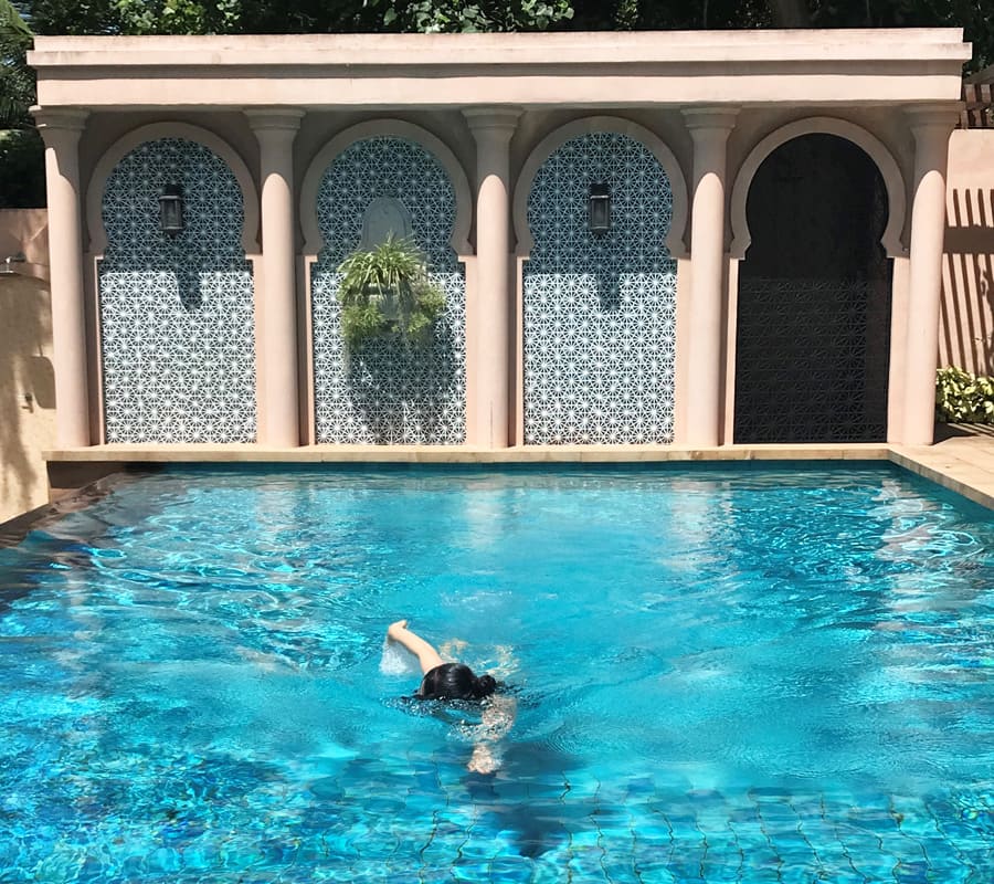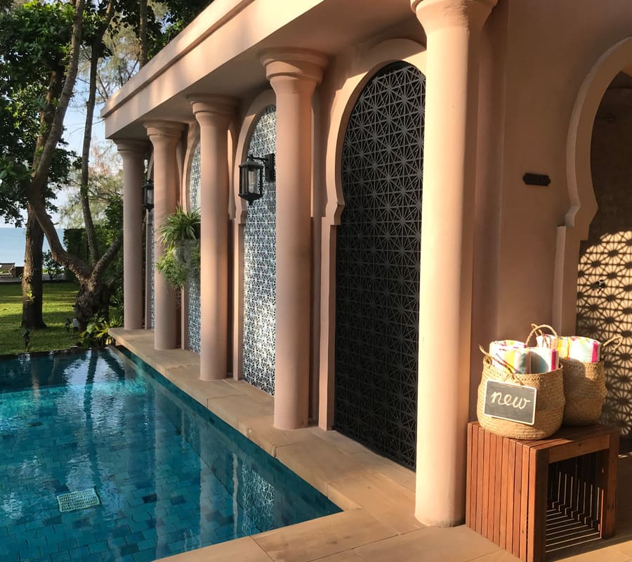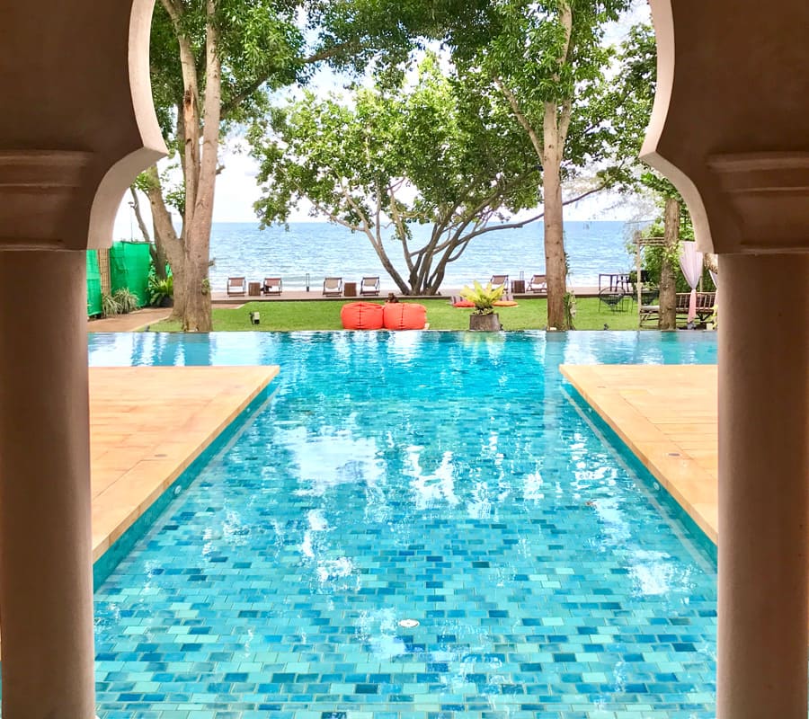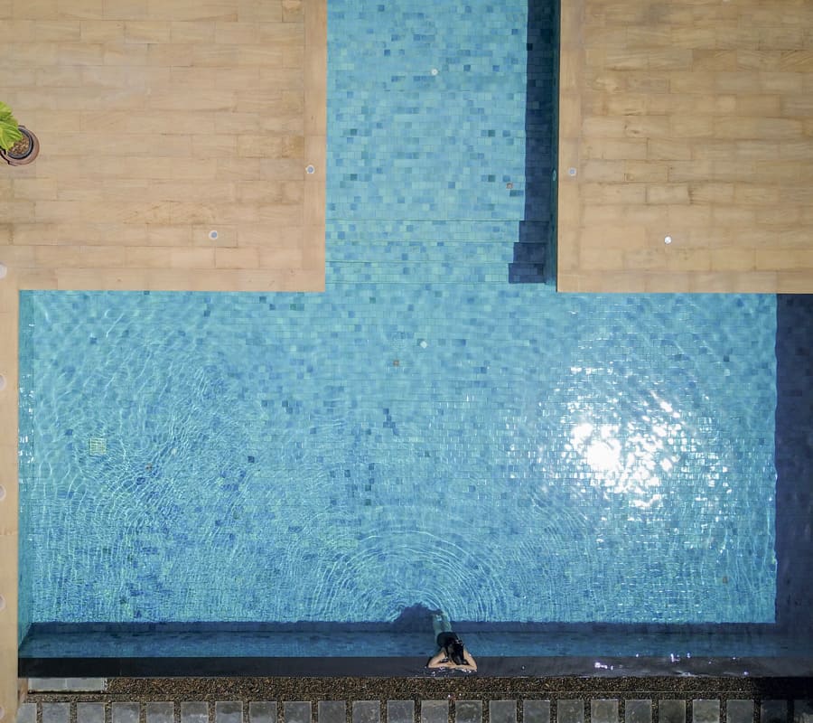 เพลิดเพลินกับสระว่ายน้ำอินฟินิตี้ มองผ่านแนวต้นไม้เขียวทะลุต่อไปจนถึงทะเลและขอบฟ้า สระน้ำระบบน้ำเกลือยังเป็นมิตรกับผิวพรรณและผมของคุณอีกด้วย